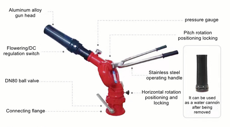 0.8 MpaPL48 소방차용 폼 캐논은 높은 유량, 긴 사거리, 강력한 관통력을 특징으로 하는 고효율 장거리 소방 장비입니다. 캐논 본체는 수평 및 수직 각도 조절이 가능하여 대형 유류 저장 탱크, 창고, 화학 공장 등 위험도가 높은 화재 진압에 적합합니다.
