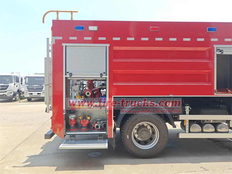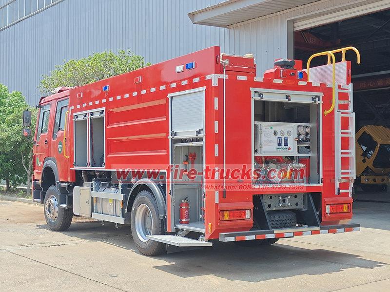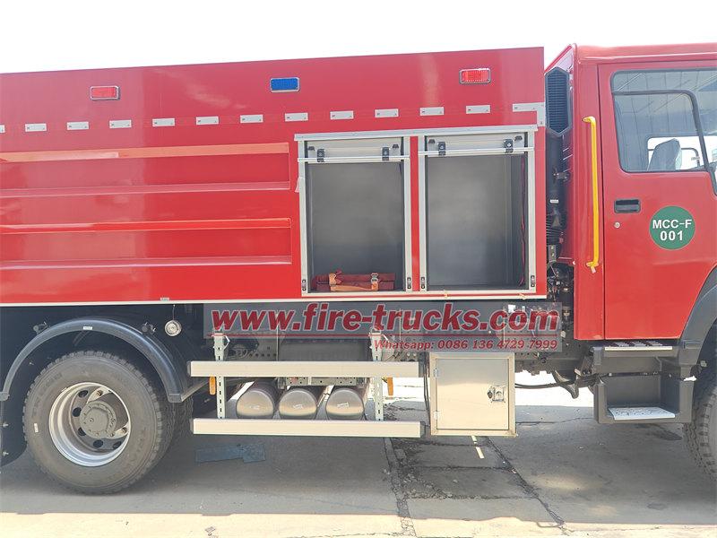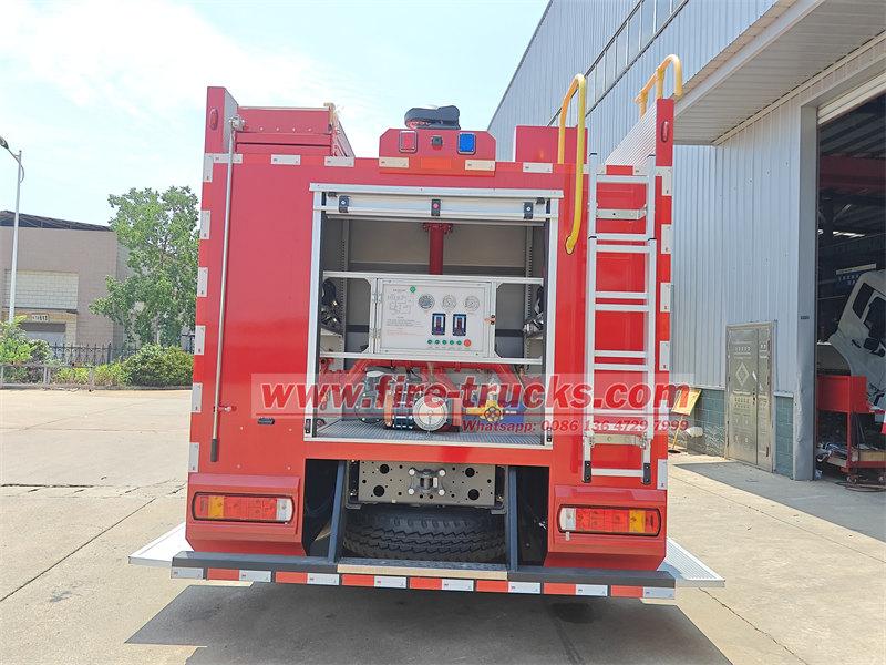 tanker material PP, 4X4, 6X6 drive, RHD drive파워스타 물거품 소방차 도시 및 교외 지역의 화재 진압 요구를 충족하도록 설계된 고성능 소방 장비입니다. Sinotruk HOWO 섀시를 기반으로 개조되었으며, 6,000L 물탱크와 2,000L 폼 탱크가 장착되어 있습니다. 두 탱크 모두 고품질 소재로 제작되었으며, 부식 방지 코팅 처리되어 장기적인 내구성을 보장합니다. HOWO 폼 텐더 소방차 효율적인 소방 펌프와 모니터가 장착되어 강력한 물 흐름과 분사 압력을 제공합니다. 모니터는 다양한 소방 상황에 맞춰 직선 분사 또는 안개 분사 패턴으로 조절할 수 있습니다.