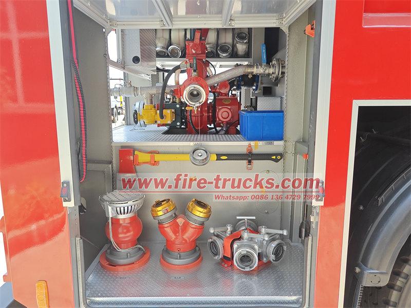 100% 맞춤형 외관, 물 + 거품 + 건조 분말 탱커 용량, 소방 도구 보관을 위한 장비실 설계, 전체 트럭 크기도 맞춤형 가능 .