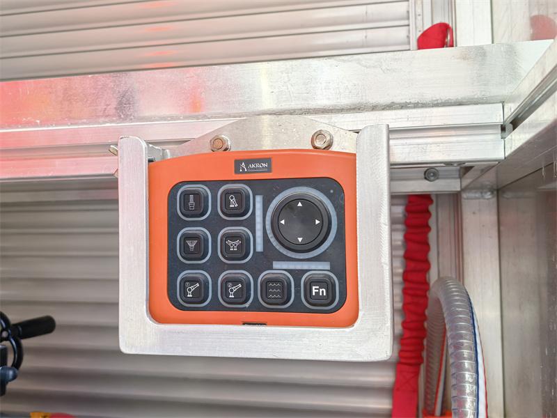 제어판: 이 시스템에는 통합 작동 지침, 주의 사항, A형 및 B형 탱크와 물탱크의 구조도, 종합적인 소방차 제어 시스템, 경고등, 전자식 스로틀, 엔진 정지/시동, 원버튼 리셋, 원버튼 급수, 원버튼 A형 제어, 원버튼 B형 제어, 조명 스위치, 주 전원 스위치, 비상 정지 스위치 및 기타 버튼이 포함되어 있습니다.